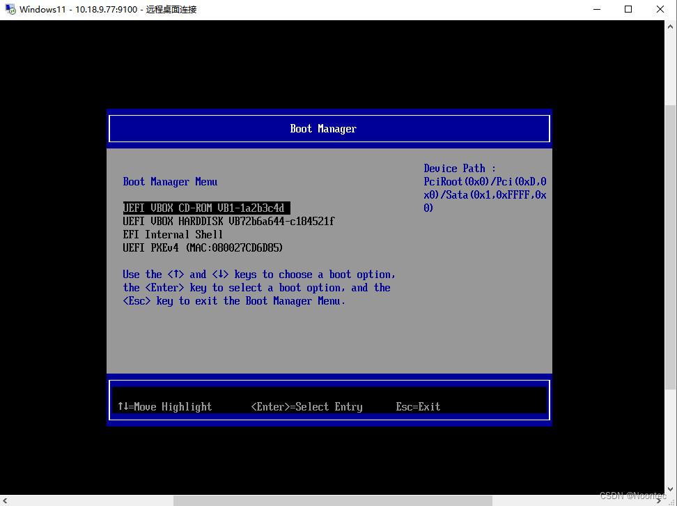 8.选择UEFI VBOX CD-ROM 选项,连续按两次“Enter”键;