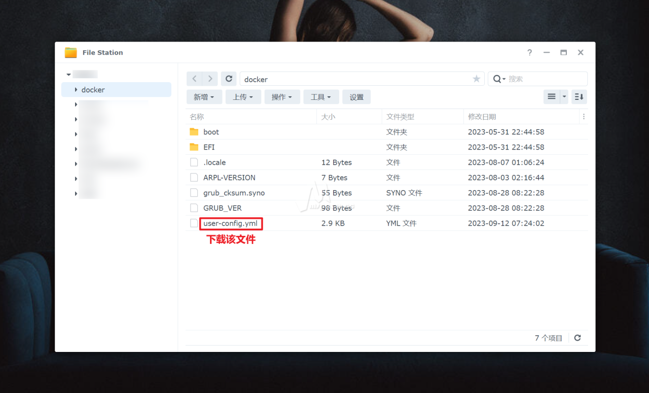 接着访问代码中的文件夹路径,找到 user-config.yml 下载