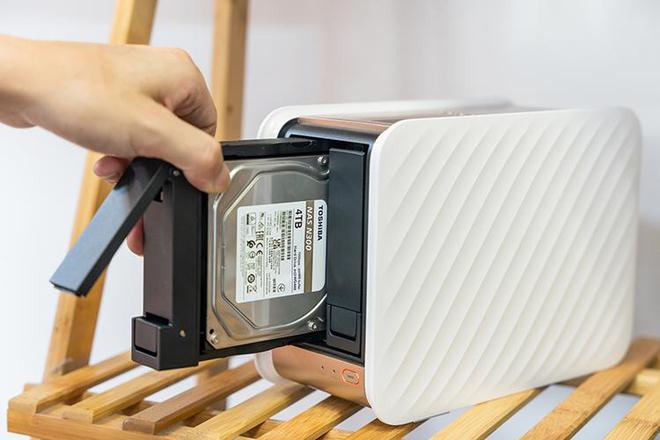 联想个人云New T2 Pro搭配东芝N300硬盘的安装非常简单,与其它NAS一样,前面板打开之后,将硬盘放入硬盘支架推入NAS之中即可。在安装完硬盘之后,我们直接连接电源,下载联想个人云App登入进行NAS系统设置即可。