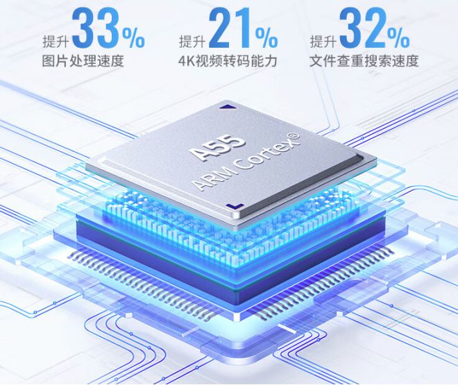 在配置上,绿联DH2100+搭载了ARM架构的四核心A55 CPU,有很着不错的AI算力,所以在照片加载、系统响应、4K视频转码、文件检索等方面的速度都有了很大的提升。