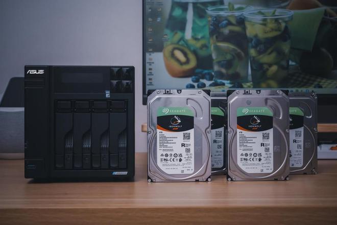 我们使用华硕AS6704T+4块希捷酷狼4TB硬盘+2块NVMe SSD来搭建测试环境。