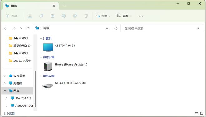 接下来咱们在电脑上挂载。首先需要注意的是,电脑要和 NAS 处于同一个局域网。打开“我的电脑”,然后点击“网络”,可以看到“计算机”里面有一个设备名称“AS6704T”,这就是咱们局域网内的 NAS。