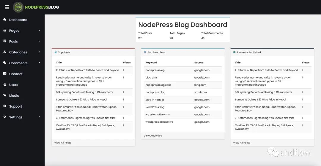 NodePress提供了用户身份验证、内容发布、媒体管理和SEO优化等功能。另外,它还包括一个灵活的主题管理系统,允许开发人员自定义网站的外观和功能。