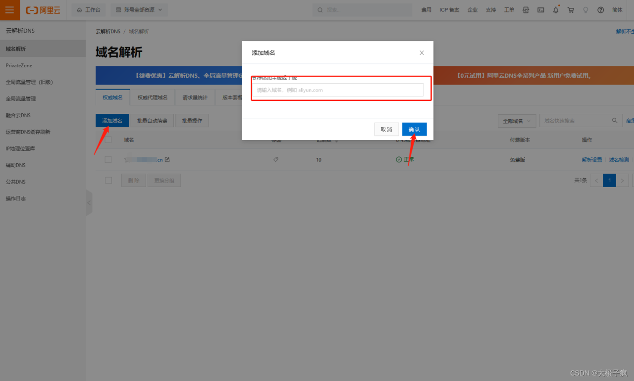 3、添加购买的域名