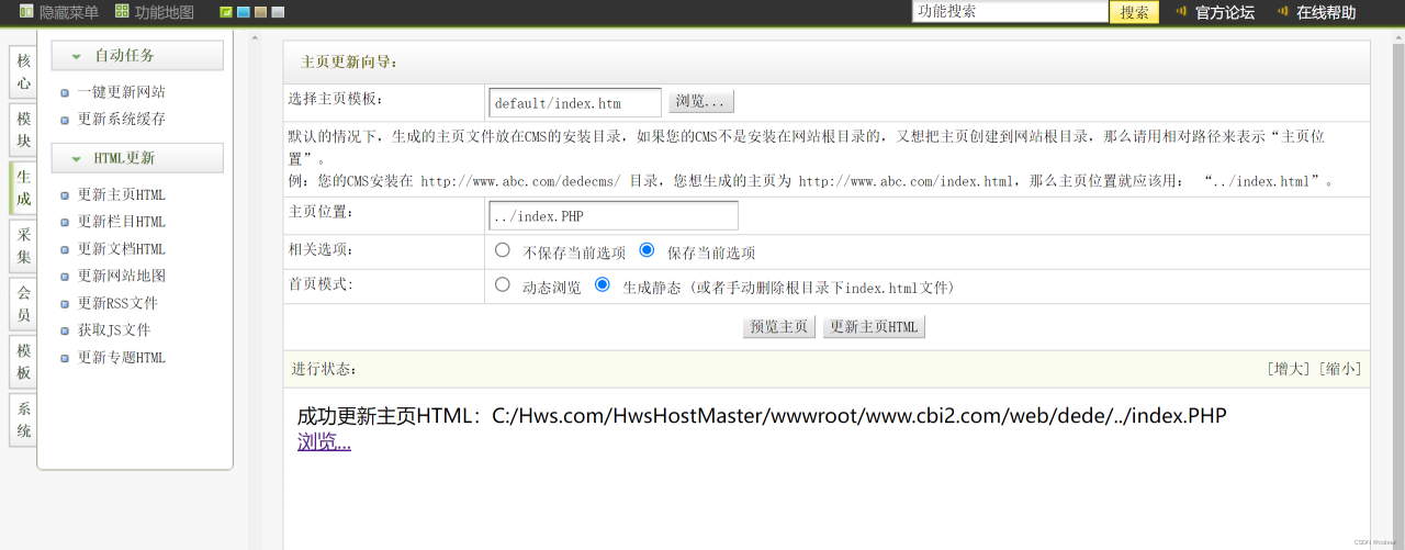 在主页模板里加上PHP代码,然后在更新主页HTML中将首页的文件名后缀改为php