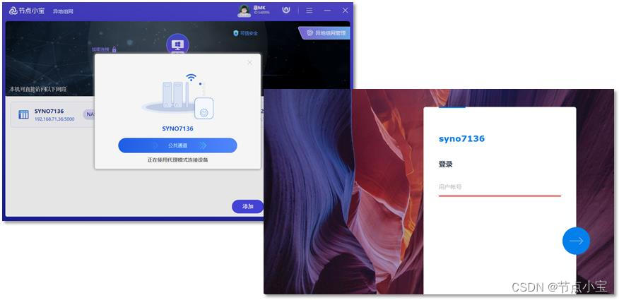 首先两台组网设备安装节点小宝客户端,下载地址可前往节点小宝官网查看。节点小宝支持多种设备端,包括NAS、路由器、Windows电脑、Mac电脑;支持群晖、铁威马、威联通、联想个人云的NAS设备。