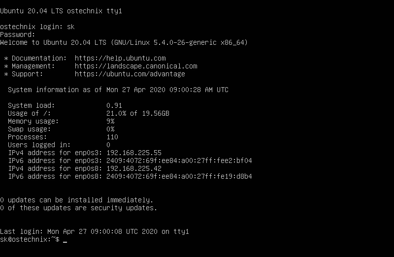 安装使用 Ubuntu 20.04.1 LTS Server 图文