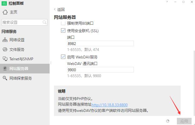 在铁威马NAS中,你可以将TNAS架设成一个网站服务器。如需启用网站服务器功能,需要开启网站服务器。 1.登录TOS系统; 2.单击TOS桌面-控制面板-网络服务-网站服务器; 3...