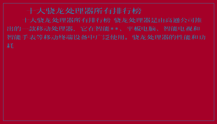骁龙处理器是由高通公司推出的一款移动处理器,它在智能**、平板电脑、智能电视和智能手表等移动终端设备中广泛使用。骁龙处理器的性能和功耗表现**,备受消费者和厂商的青睐。本文将介绍十大骁...